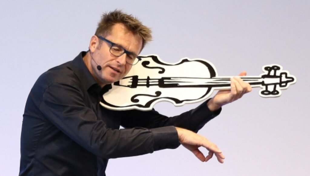 Richard uses music as a metaphor and a source of inspiration for businesses and interactions within them. He compares the range and diversity of peoples’ characters to musical instruments; thus a drum represents an active, motivated, hands-on pacesetter, whereas the horn is the unobtrusive yet observant team player. In his keynote speeches Richard de Hoop motivates his audience by calling on them to focus on the strengths of each individual and to place that person where he or she can best use their talents. Just as each instrument in an orchestra has its own musical role to play.